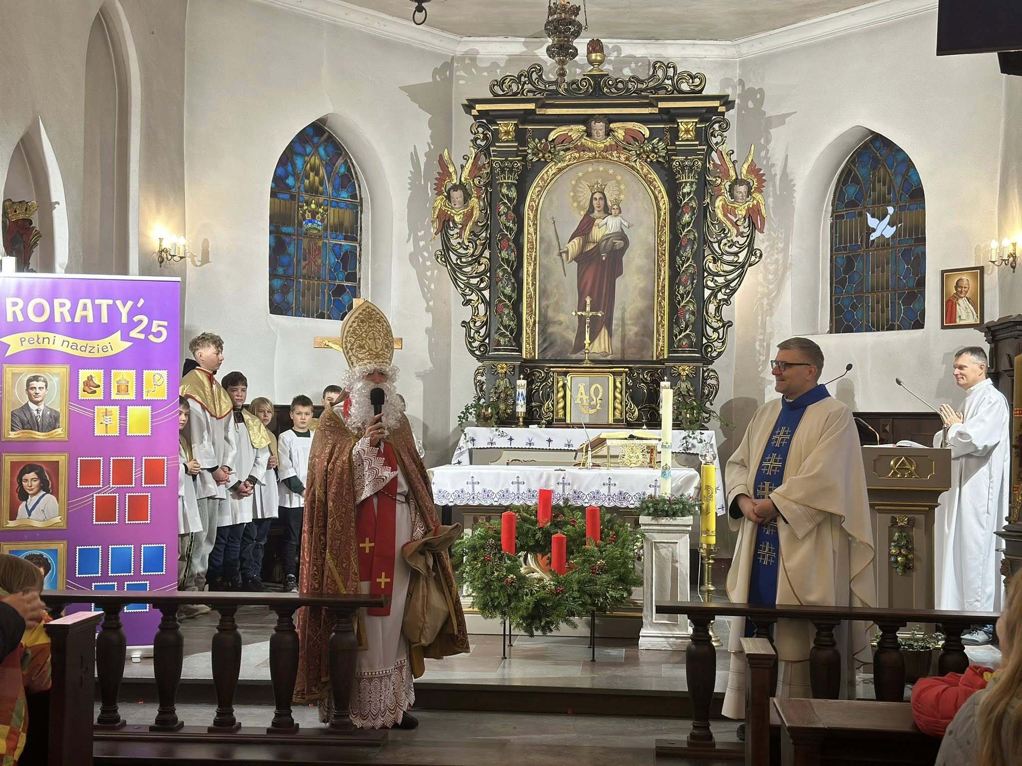 Jest taki jeden święty, którego znają wszyscy… a na pewno wszystkie dzieci! Mowa o św. Mikołaju, biskupie Miry, który odwiedził dziś naszą Parafię, w czasie Mszy świętej roratniej. Wszystkie (grzeczne ) dzieci otrzymały podarek od Świętego i miały szansę wypić z nim kakao na wspólnym spotkaniu po Mszy świętej.