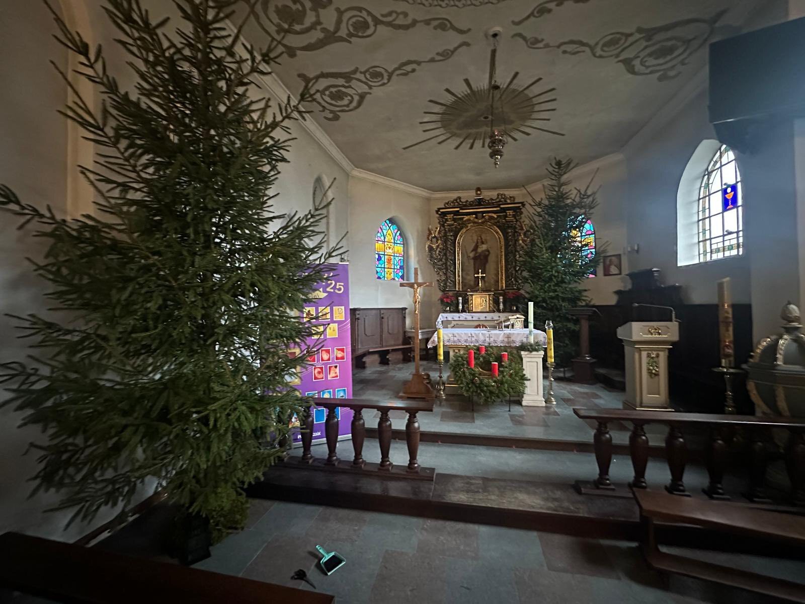 Święta Bożego Narodzenia to szczególny czas, do którego przygotowujemy się także przez stawianie choinek i dekorowanie Kościoła. Dziękujemy wszystkim, którzy włączyli się w dzieło dekorowania choinek oraz stawiania stajenki betlejemskiej.