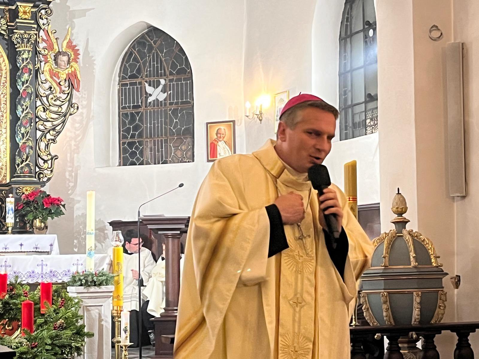 Nasze parafialne roraty były wyjątkowe. Przewodniczył im biskup Piotr Przyborek, który w czasu Mszy świętej przedstawił nam sylwetkę św. Jan Chrzciciela, zapowiadającego przyjście Mesjasza. W czasie spotkania Wspólnoty Biblijnej przybliżył nam pawłową teologię zbawienia znajdującą się w Liście do Rzymian. Bardzo dziękujemy ks. biskupowi za „wizytację” (bez kontroli! ;)) oraz wszystkim zaangażowanym w to dzieło, przygotowującym to spotkanie oraz liturgię.