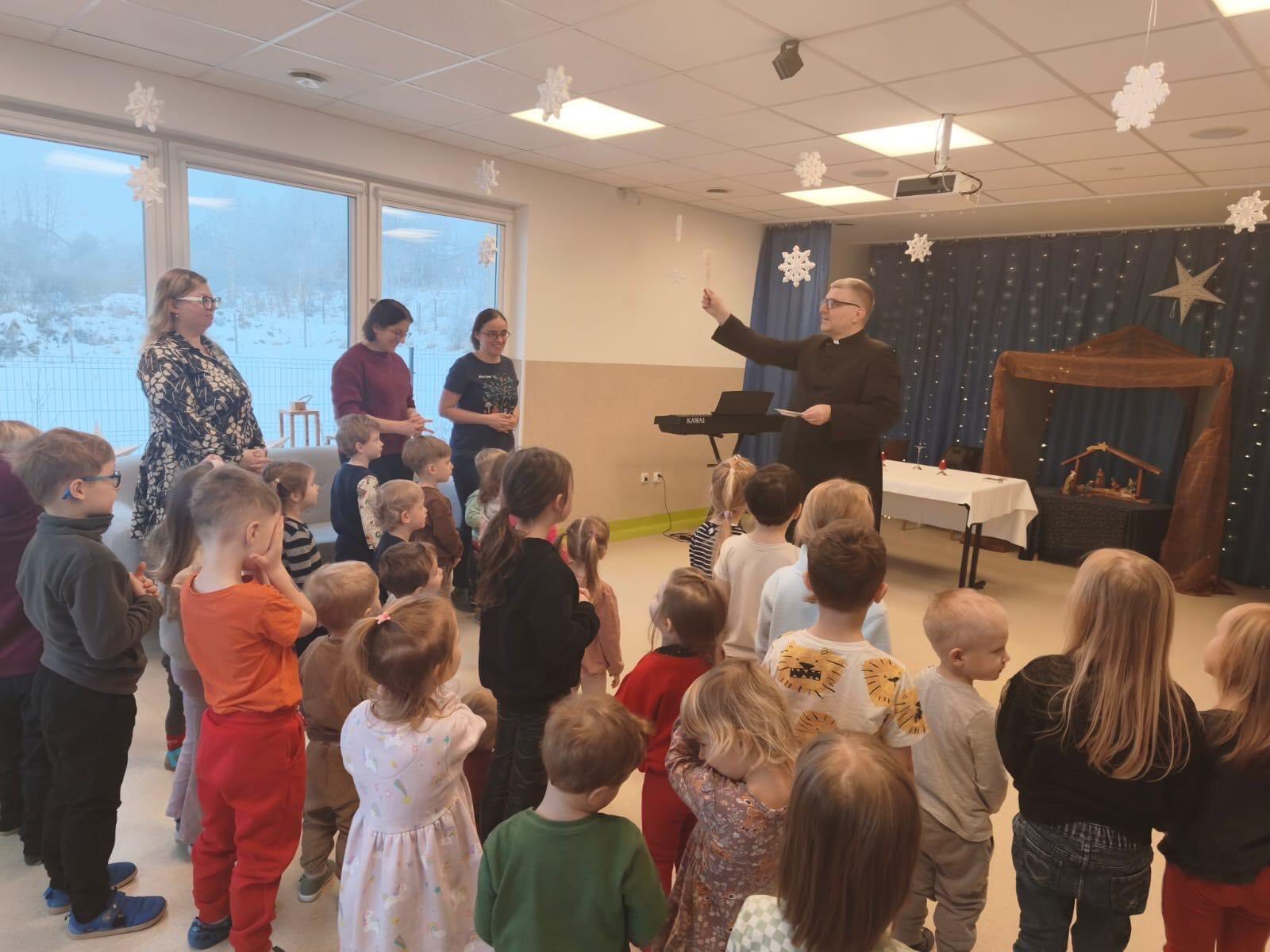 Styczeń to czas wizyt duszpasterskich w naszych domach. Bywają także szczególne kolędy, jak odwiedziny najmniejszych Parafian w Przedszkolu Magiczny Kuferek, gdzie podopieczni pośpiewali kolędy, pomodlili się i dowiedzieli, czym jest wizyta duszpasterska.